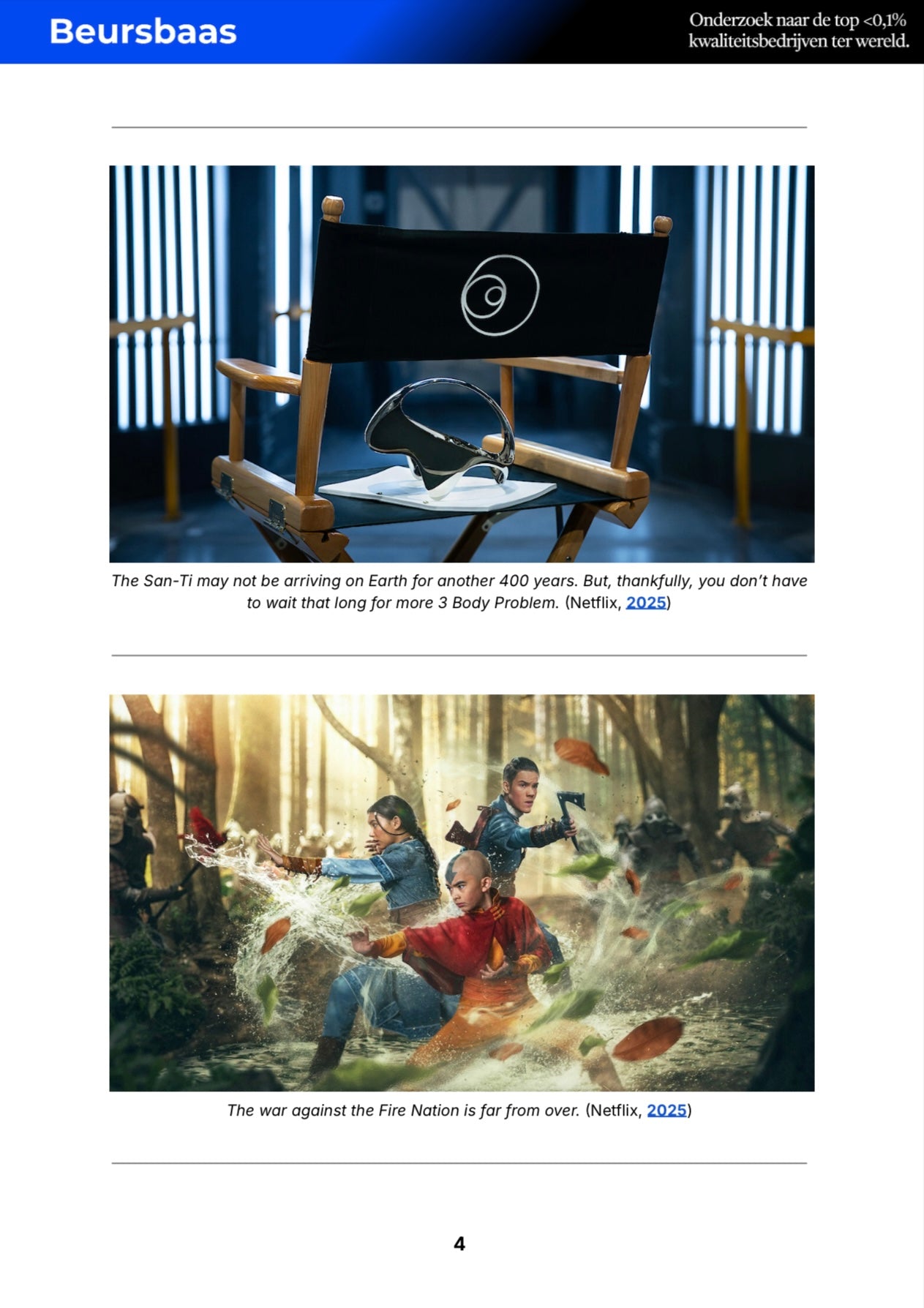 Voor velen zal Netflix geen introductie nodig hebben. Het bedrijf schat namelijk dat het een wereldwijd bereik heeft van ruim 700 miljoen mensen. Dit aantal baseert Netflix op zijn aantal betalende abonnees, goed voor 301,6 miljoen wereldwijd eind 2024. Letterlijk wereldwijd, want het aantal landen waarin Netflix zijn platform heeft uitgerold, telt ruim 190.